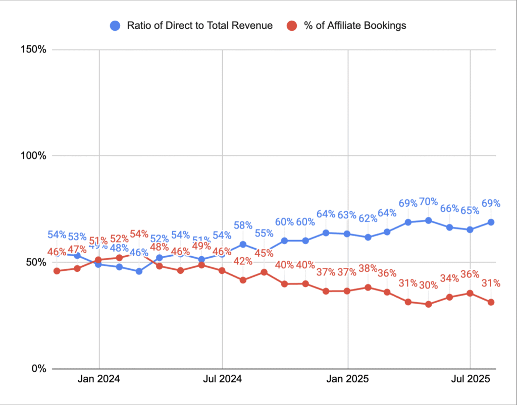 If you’re able to increase the % of people who book on your site it will do a few things.